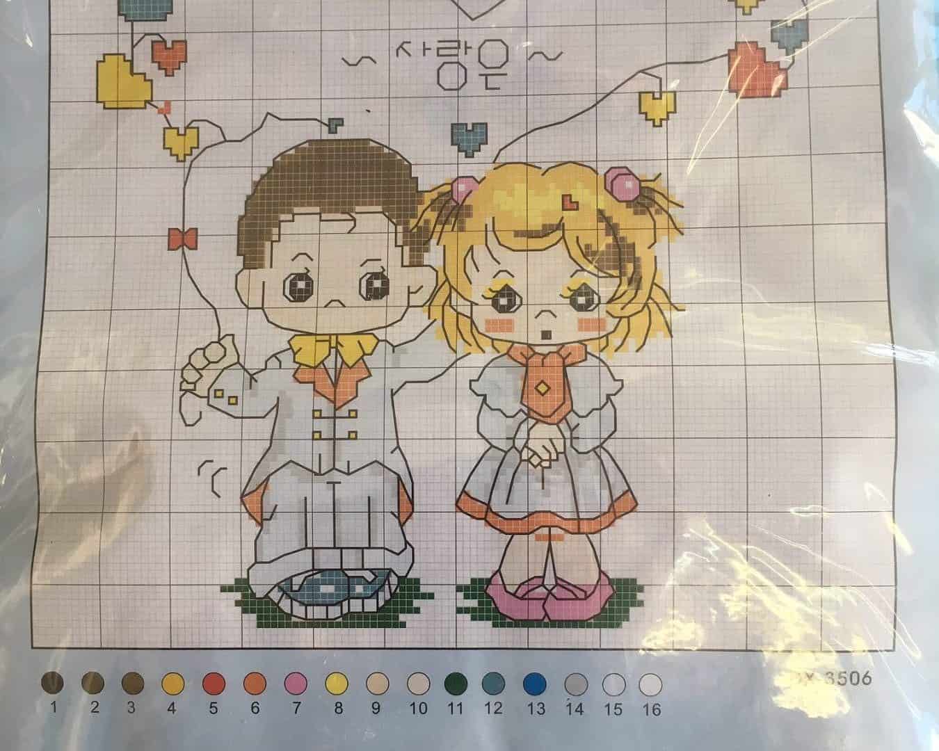 A előrenyomott keresztszemes készlet tartalmazza a cérnát,mintát és a tűt is !